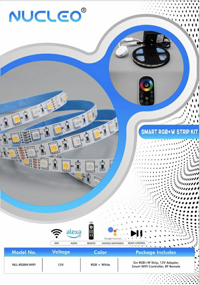 New product launch - Smart RGBW LED Strip Kit. Includes 5m LED strip, 12V adapter, smart Wifi controller (supports mobile app, Alexa & Google Assistant voice commands and RF Remote). For more details feel free to contact us via call/whatsapp : +91-9869670703 or visit us on www.ledlightindia.co.in